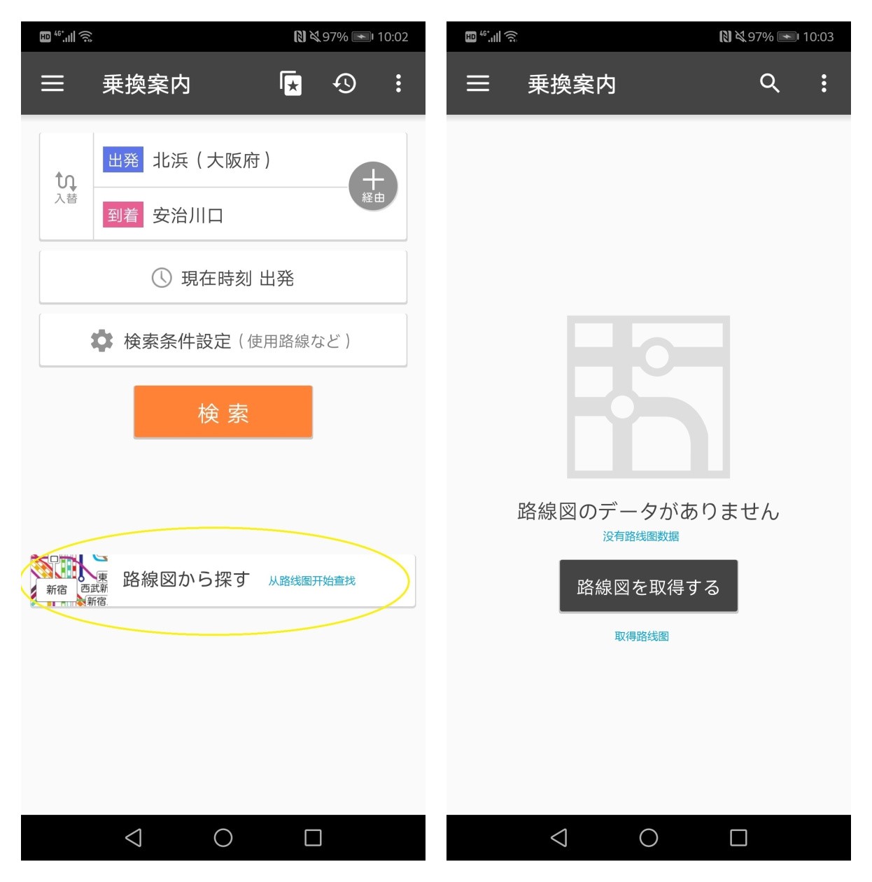 进入铁道换乘案内界面后,我们先下载需要的路线图。