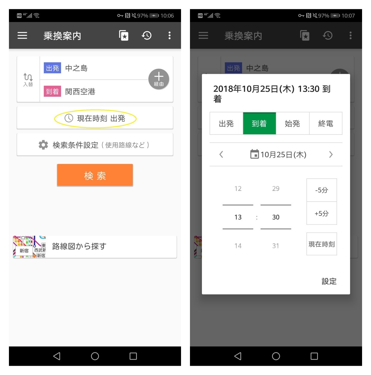 除了能选择“现在出发”,我们还能指定出发时间、到达时间,查询最早一班车和末班车。例如,我们可以点击黄色圈圈所在的方块,进入二级页面,将到达时间设置为10月25日下午13:30分 (这个功能对赶飞机非常实用)。选好时间后按下“设定”。