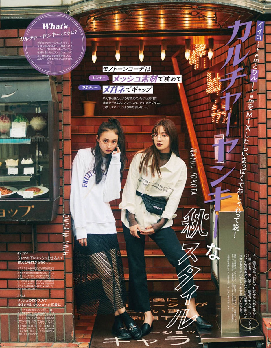 在东京新宿、原宿、涉谷等潮流地带,随时可见顶着彩色头发的美少女们。他们的风格个性度高,但女性化程度较低。相比欧美风里硬朗的大女人形象,日本的街头风柔和很多,造型也加入了不少女人味的元素,比如荷叶边,印花,刺绣等,有时候还有些小性感。