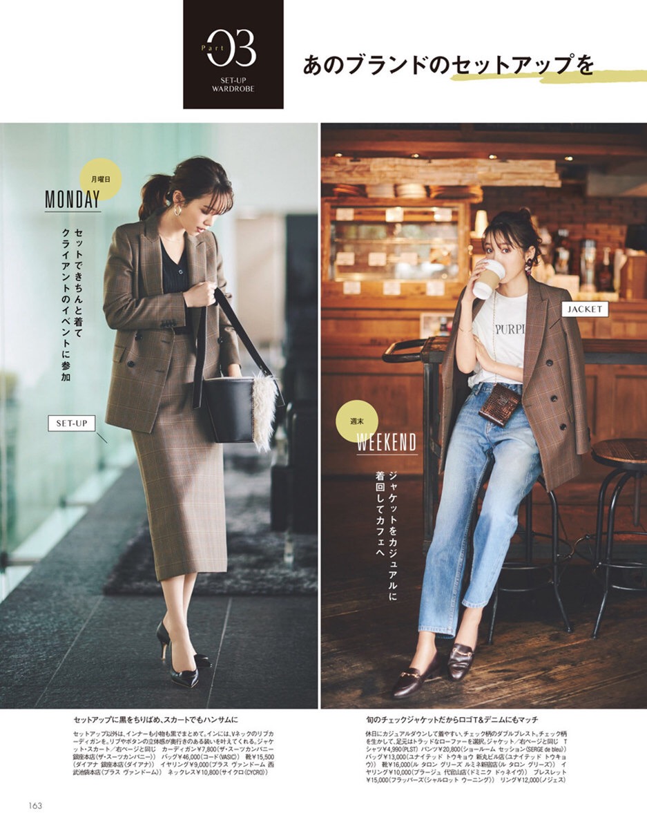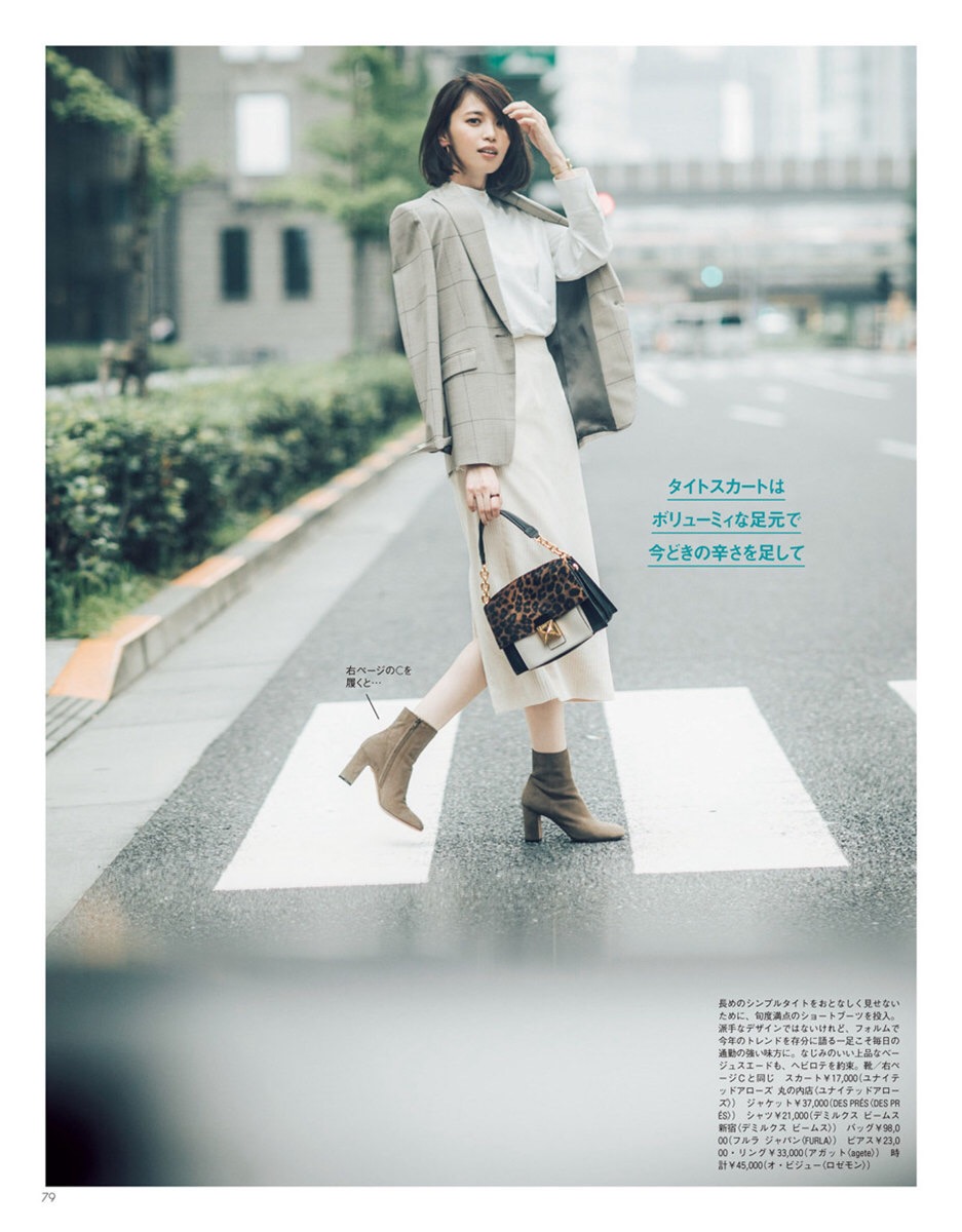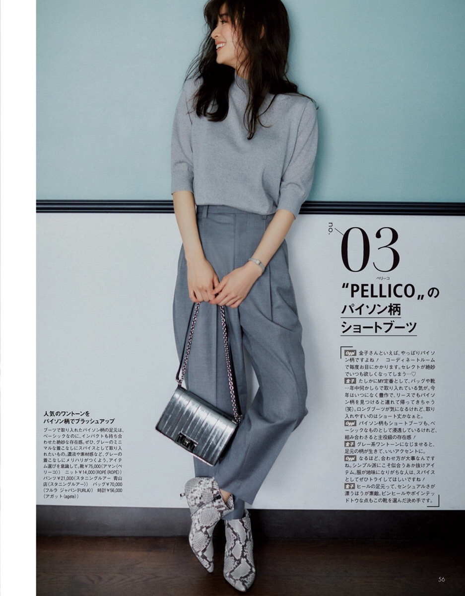 日系通勤装,颜色以黑白灰及藏青为主,款式简单,纹理最多也就条纹、格子,通过极简质朴的方式展现着装风格,如此淡然从容,也常被人们戏称为“性冷淡风”。日系都市装并非是硬往极简里靠,而是作为通勤来说,刚刚好到达那个水平线,所谓点到即止。此类搭配选择的都是基础款单品,平凡普通,但谁都少不了,很容易营造“一衣多穿”、“一衣多配”的效果。和纷繁复杂的图案印花相比,极简的服饰更能让人略去表面的华丽,从而了解那个真实的你。