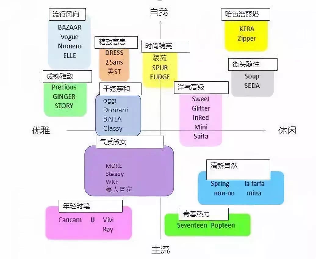 这是日本杂志按照风格的分类。主要有:休闲,自然,街头,摩登,甜美,性感,优雅等风格关键词。也就是说,日系风并不是单一的风格,而是多元化的风格统称。只不过,这些风格都是被很日式化地展现出来。