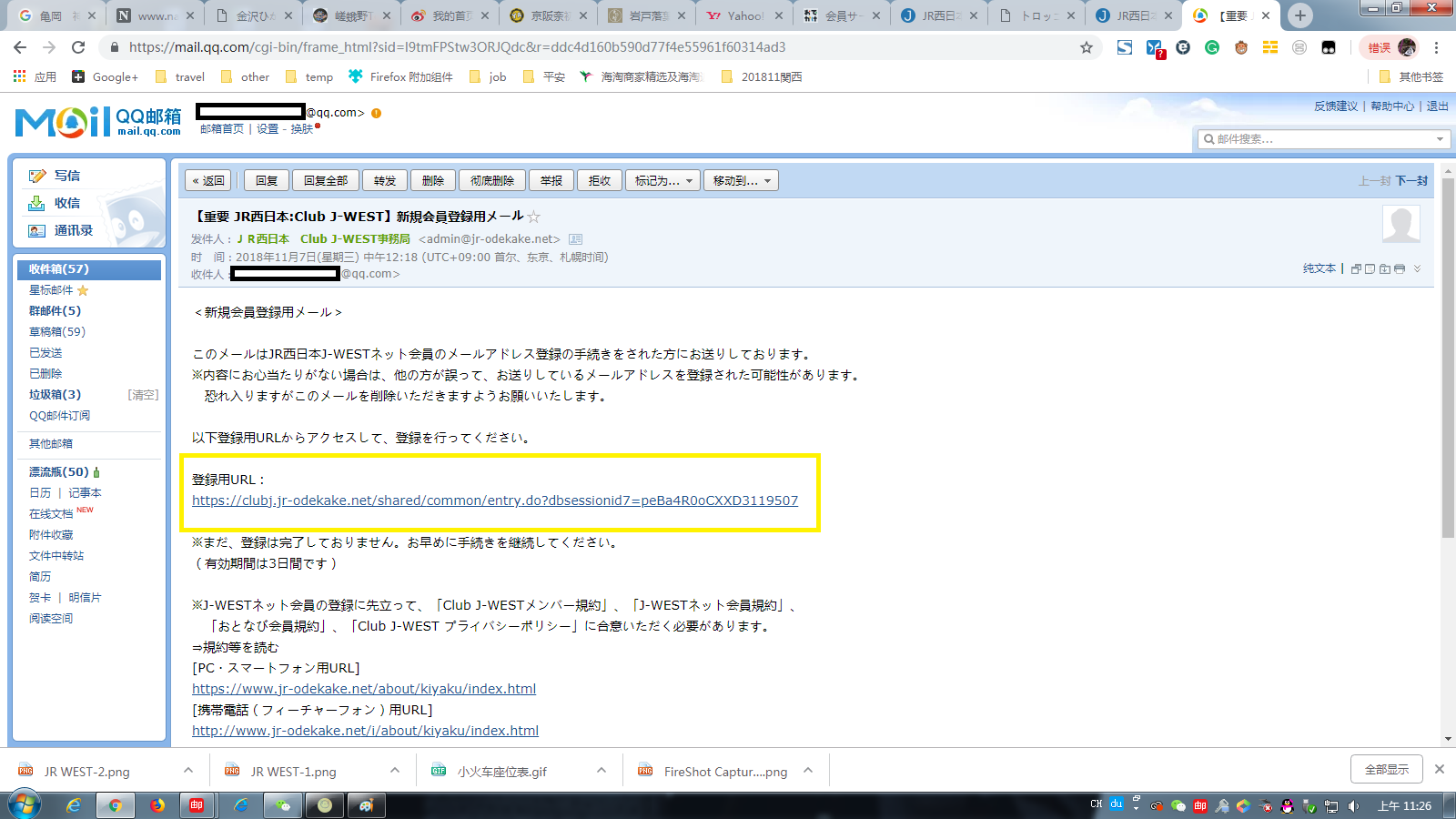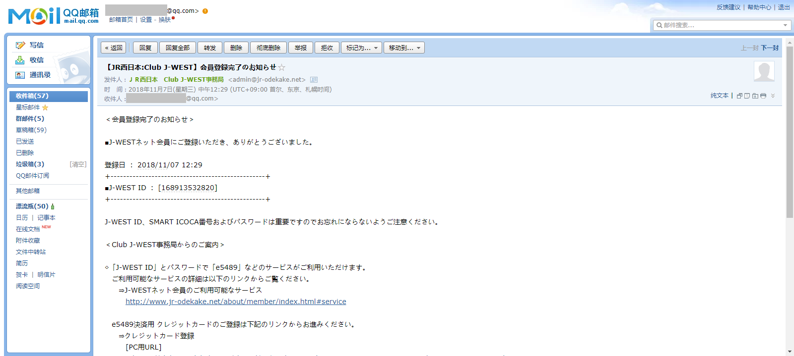 出现这个页面后关掉也没关系,同时打开自己刚才登记的邮箱,查收JR西日本发来的邮件。