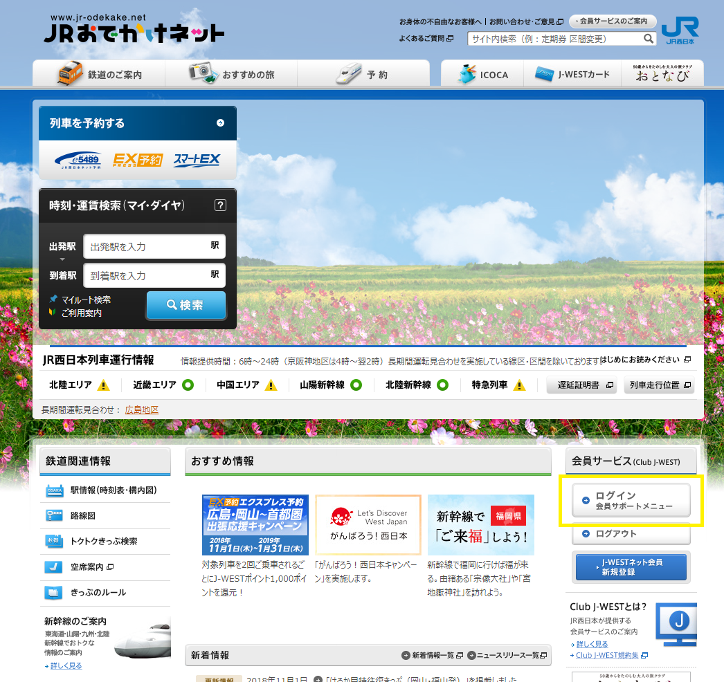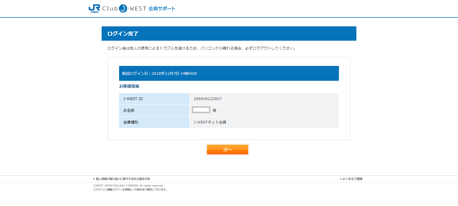 2.输入你的JR WEST ID及密码,按橙黄色按钮ログイン