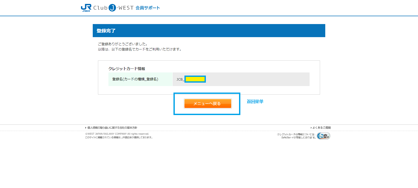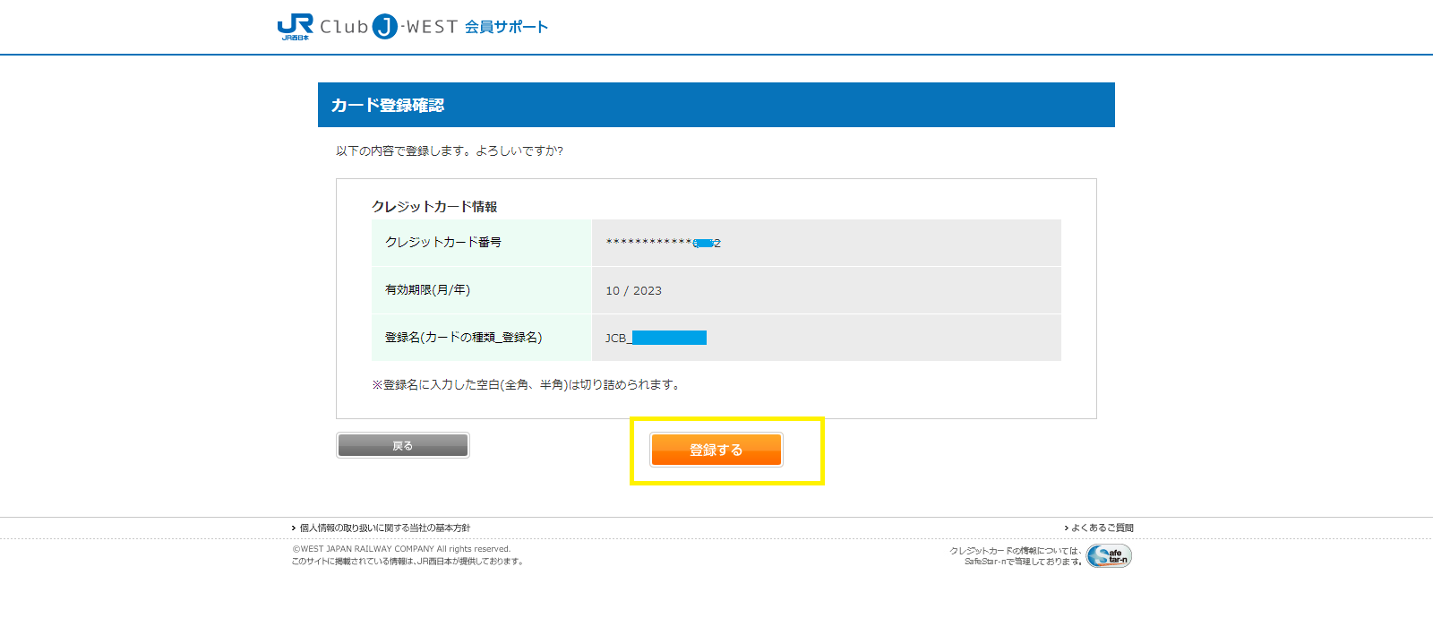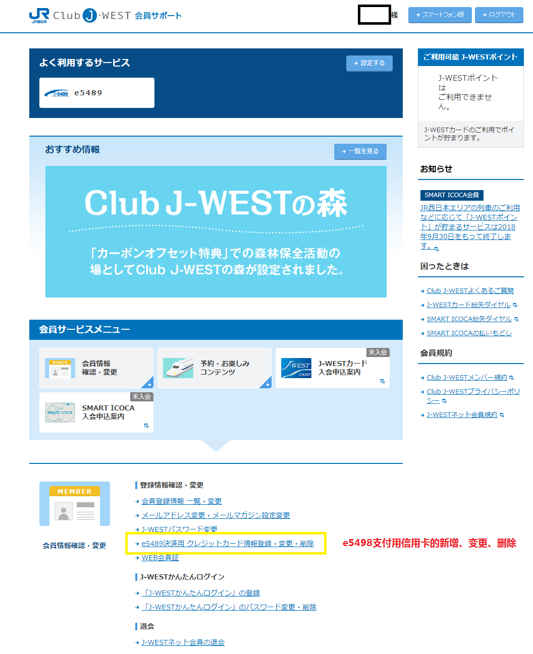注册完JR-WEST的ID之后,我们需要绑定一张本人名义的国际信用卡,用来支付车费。