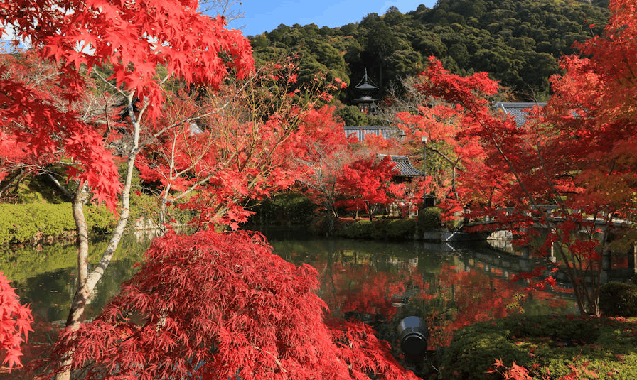 近年來,它的名氣已經達到外國遊客也經常來訪此地的程度,並且永観堂(禪林寺)在日本第壹大的旅行網站的日本秋葉觀賞地排名中排名第壹。欣賞秋天落葉的最佳時間是11月底左右。並且當地人還建議在晚上觀看紅葉,或許會有不壹樣的感受。
