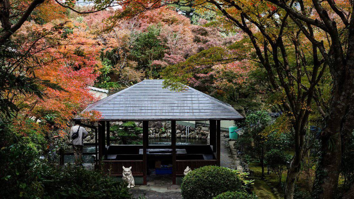 长崎市区,堪称枫叶荒漠,虽然外国人居留地的风情在我心中是岛内之首,可好容易红叶季带朋友来一回,看不到秋枫总有几分遗憾。还好迎仙閣帮我挽尊了一把,一年只在红叶最盛之时开放两天,这个热闹算凑的及时又应景。